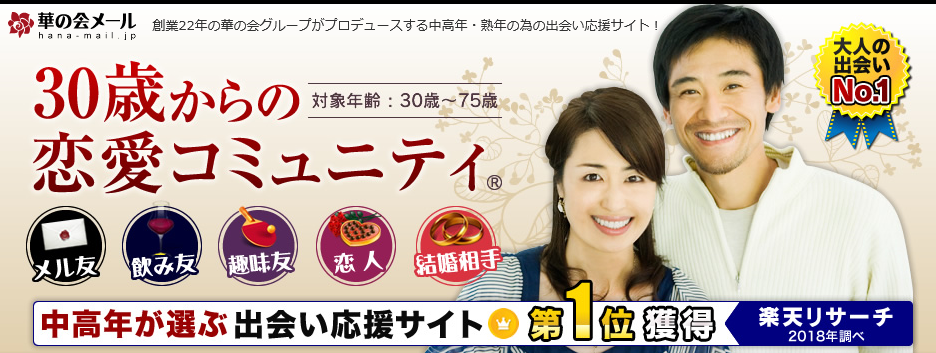 「華の会メール」は、30歳~75歳を対象としたサービスです。